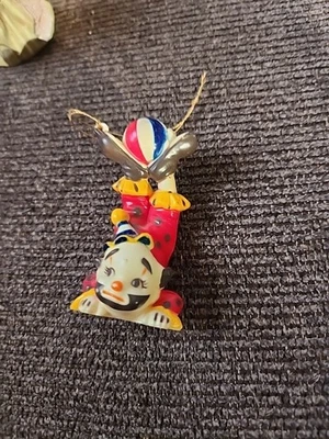 VINTAGE Clown Handstand Balancing a ball plastic Christmas ornament 3" Hong Kong