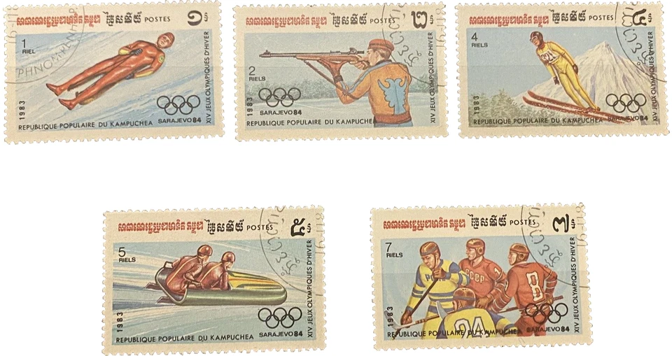 A11 Set Of 5 CTO Stamps CAMBODIA Winter Olympics SARAJEVO 1984 SB 475-479