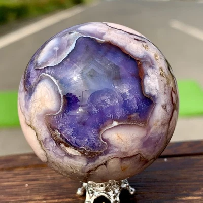 402G Natural Sakura Flower Agate QUARTZ Sphere Crystal Ball Reiki Healing