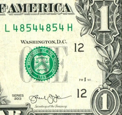 (( QUAD REPEATER )) $1 2013 (( 48544854 )) FANCY SERIAL # ** PAPER CURRENCY
