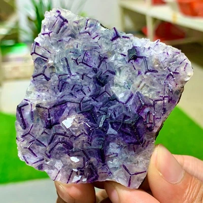 152G Inner Mongolia Natural Fluorite Purple Edged Cube Crystal Mineral Specimen