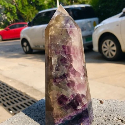 998G Natural fluorite obelisk quartz crystal slice mineral specimen