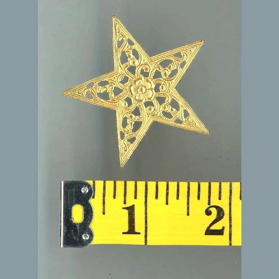 Five Metal Stars 1 7/8" Gold Colored Metal Open Scrolled Craft Supplies