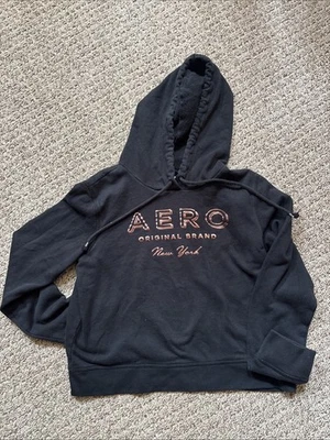 Aero Aeropostale Black Hoodie Sweatshirt Womans Size Small