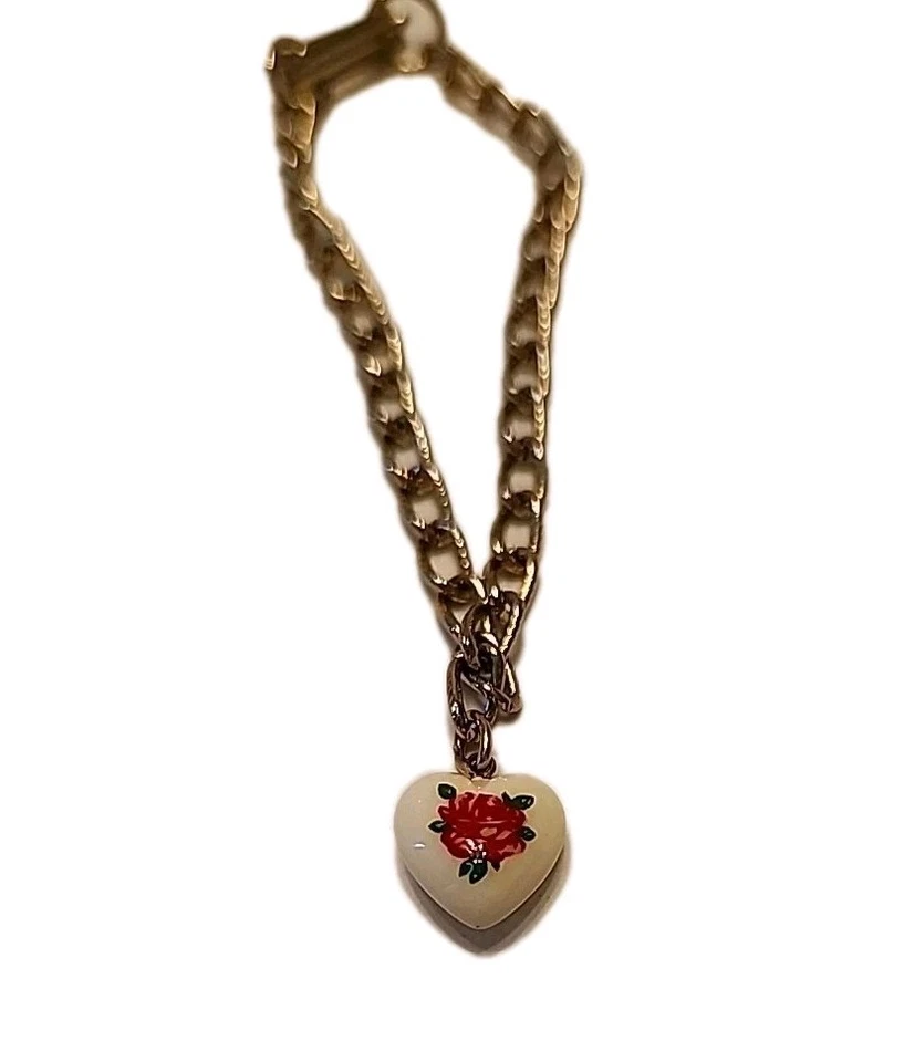 Vintage Valentines Day Birthday Bracelet Little Girls Toddler Floral Heart Charm