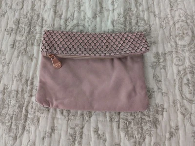 Ipsy Pink Soft Fabric With A Netlike Pattern On Back And Rose Gold Zipper Bag
