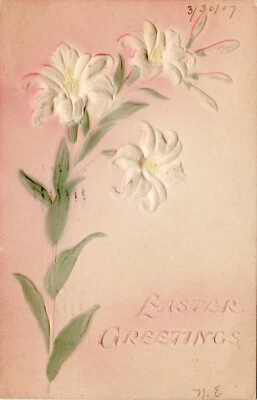Easter Greetings Flowers - Old Postcard Posted 1907 Embossed Undivided Back