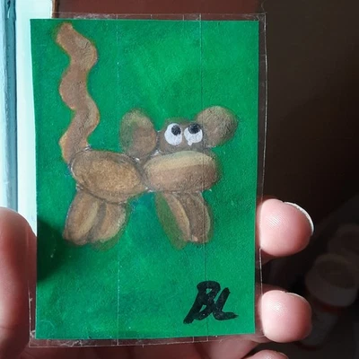 Balloon Monkey OOAK Miniature Acrylic Painting Signed Art Card aceo atc