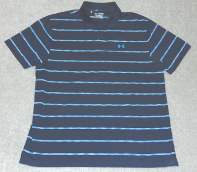Under Armour Performance Golf Men Polo Shirt 2XL Blue Striped