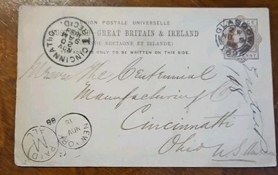 1888 Postal Card Scottland To NY To Cincinnati Ohio Usa