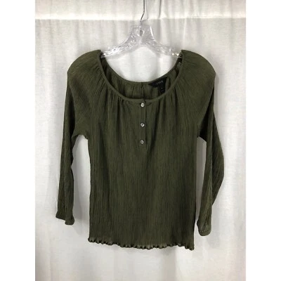J. CREW Women’s Forest Green Sheer Top Blouse Sz M