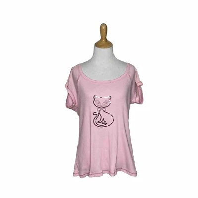 Caren Sport Rhinestone Kitty Cat Pink Short Sleeve T-Shirt No Size Tag