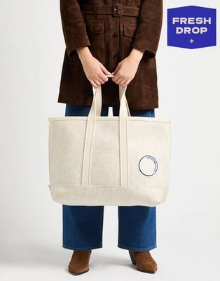 RRP€430 EMPORIO ARMANI Felted Tote Bag Large Logo Patch Double Handles