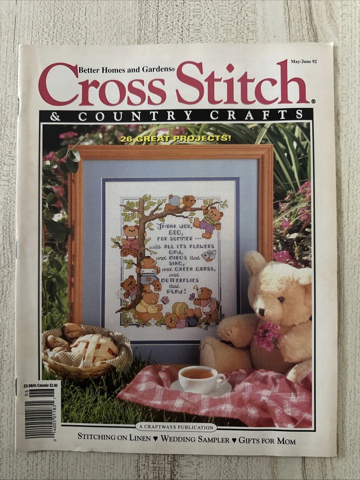 Cross Stitch And Country Crafts Magazine May June 1992 Wedding Sampler Bear Pray