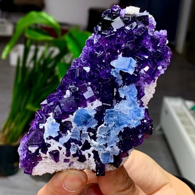 127G Rare transparent purple blue cubic fluorite mineral crystal sample/China