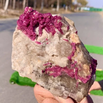 1.48LB Rare!! Natural red tourmaline quartz crystal cluster mineral specimen