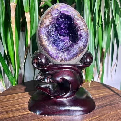 3.74LB Natural Amethyst Cave Dragon Egg Quartz Raw Stone Sample+Base