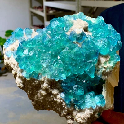 9.26LB Rare transparent blue cubic fluorite mineral crystal sample/China