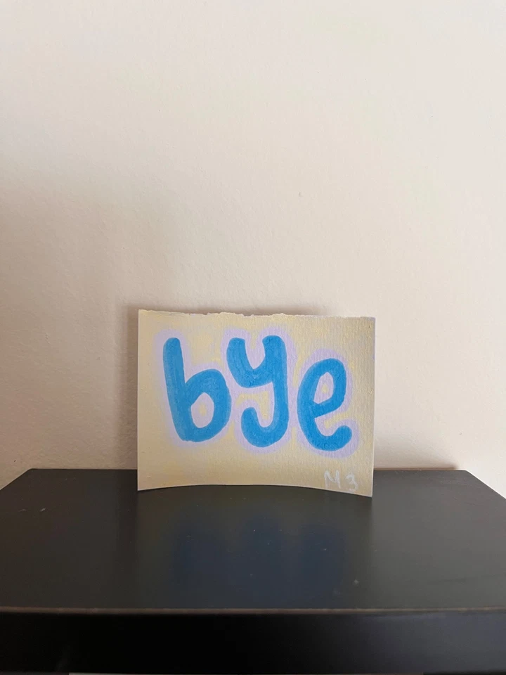 Bye ACEO Original Milky Marker Drawing Cute Text Art 2.5x3.5