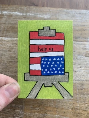 Original ACEO Acrylic Mini Painting 2.5x3.5 Anti Trump Leftist Political Flag