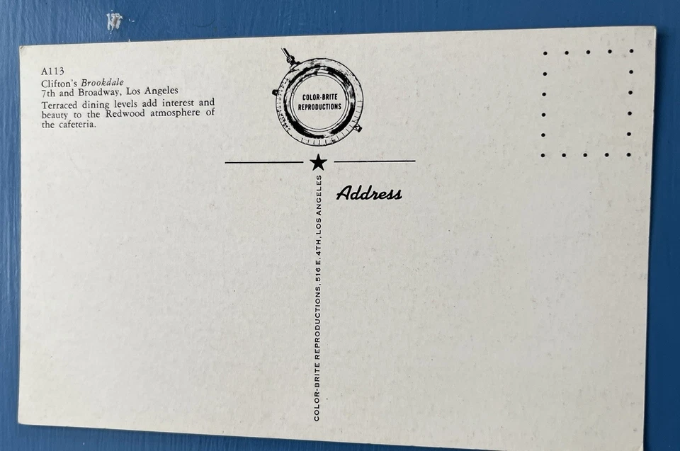 Clifton’s Brookdale Restaurant Postcard - Los Angeles CA - Terraced Dining Level