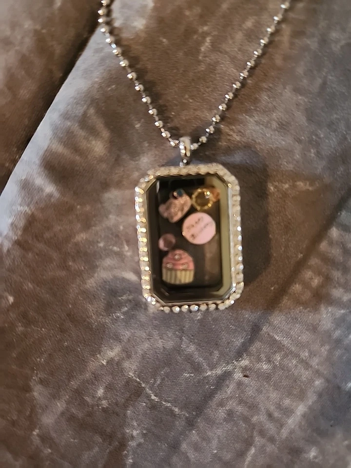 Happy Birthday Silver Rhinestone Metal Glass Pendant Floating Locket
