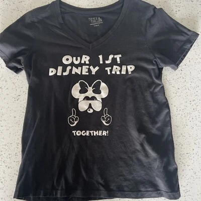 First Disney Trip Women’s Family Shirt S V Neck Handmade Minnie Tinkerbell
