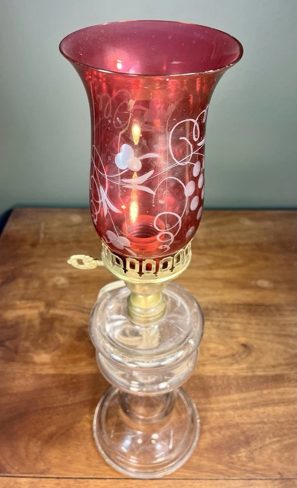 Antique Cranberry & Clear Glass Table Lamp