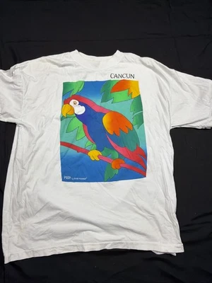 White Cancun Shirt With A Parrot By Pear Size 2 Xl