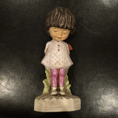 Vintage Moppets 1971 Fran Mar - Girl With Flower Behind Her - 6” Figurine