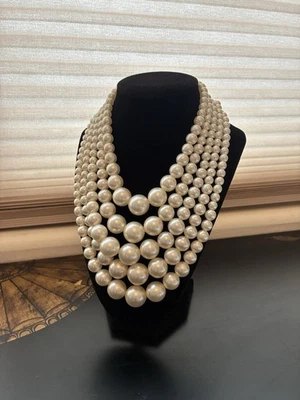 Vintage 5 Strand Faux Pearl Choker Necklace Hong Kong Statement Jewelry
