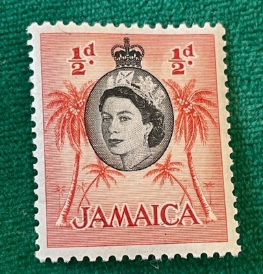 1956 Jamaican 1/2d stamp: Queen Elizabeth II with palm trees - Mint Hinged