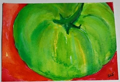 ACEO Green Tomato Watercolor Painting Art by Sharon Foster Original