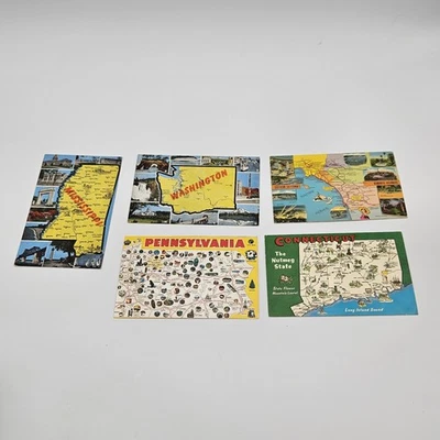 Vintage Used & Unused Postcard Lot Of 5 US State Maps Travel Theme 1970s 1980s