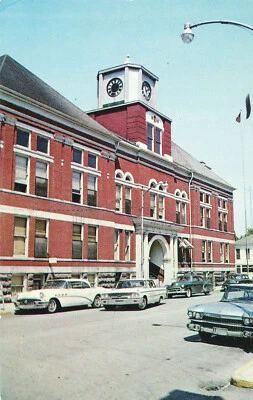 Cass County Court House Logansport IN Cars in front - Old Postcard UNUSED Chrome