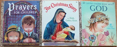 3 Vintage Little Golden Books ~ THE CHRISTMAS STORY, PRAYERS FOR CHILDREN, GOD