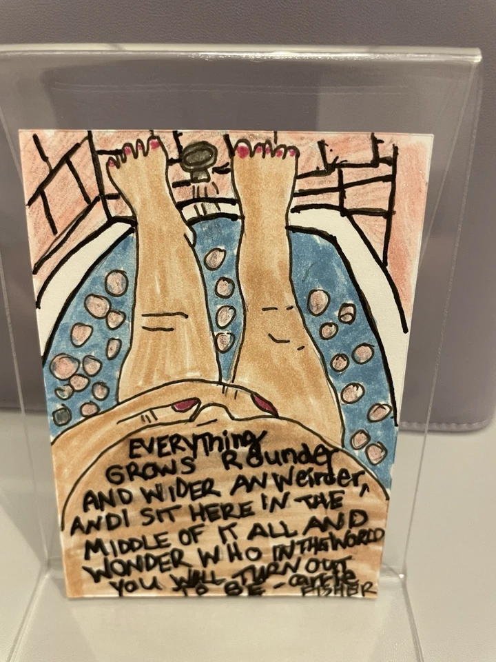 ACEO-Colored Pencil Drawing of Pregnant Woman in Bathtub Original Art