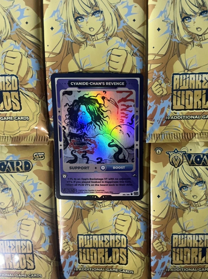 VCARD Holographic Awakened Worlds First Edition Support Cyanide Revenge 232/250
