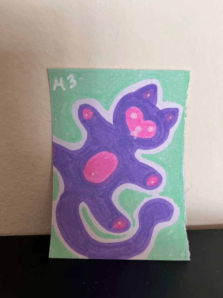 Purple Cat ACEO Original Milky Marker Drawing Cute Cat Art 2.5x3.5