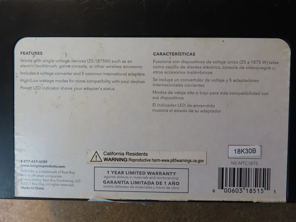 Insignia NS-MTC1875 Travel Converter and Adapter - Black