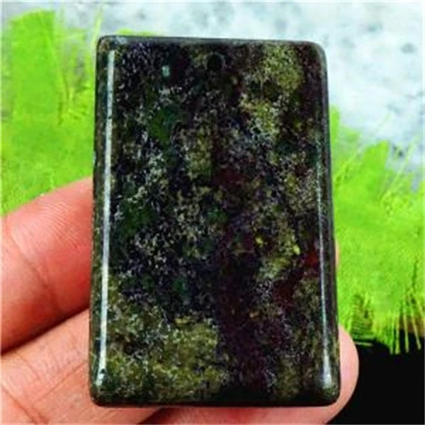 J22978 47x30x7mm Natural Red/green Dragon Blood Stone Oblong Pendant Bead