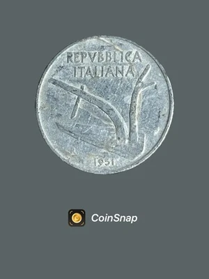 1951 Italy 10 Lire Aluminium Coin Plough / ears of wheat