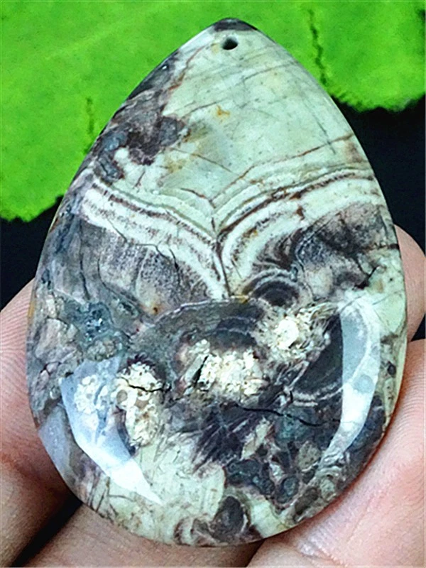 H19692 44x24x7mm Natural Leopard Skin Jasper Teardrop Pendant Beadead