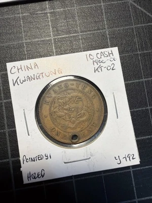 China Kwangtung 10 Cash 1900-06 KT02 Y192 Holed Pointed Yi Variety