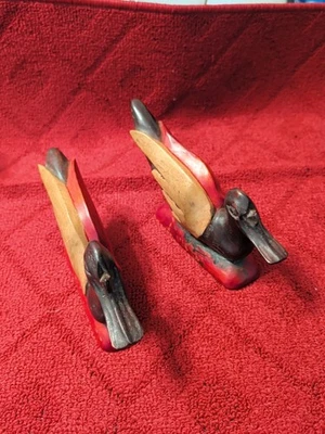 Vintage Wooden Hand Painted Ducks Bookends Marine Decor Farm Art Wildlife Pair