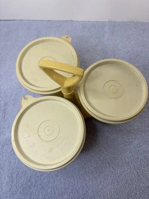 Vintage Tupperware Condiment Caddy Set Almond w 3 Bowls & Lids