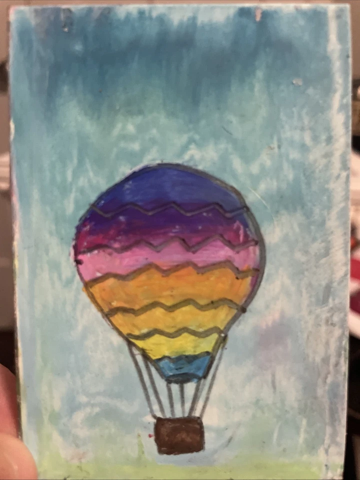 ACEO Original Hot Air Balloon Oil Pastel Card Artist Jada Appleton