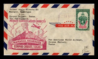 Dr Jim Stamps Nicaragua Air Mail First Direct Flight to Corpus Christi 1946