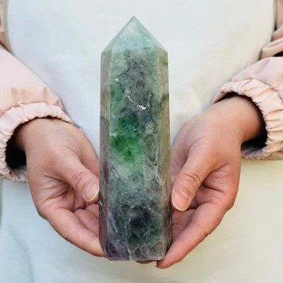 1073G Natural fluorite obelisk quartz crystal energy column Reiki healing