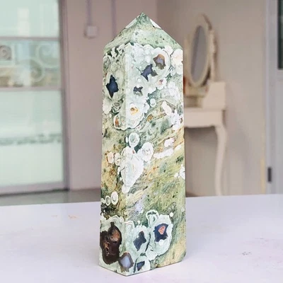 876g Natural Ocean Jasper Quartz Crystal Obelisk Wand Point Mineral Reiki AK128